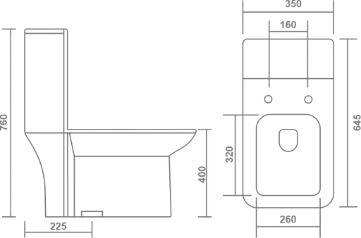 L 645 W 350 H 760 MM