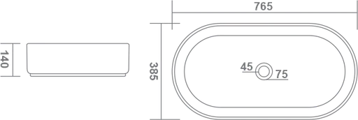 L 765 W 385 H 140 MM